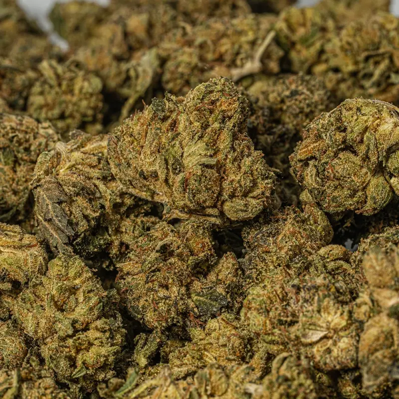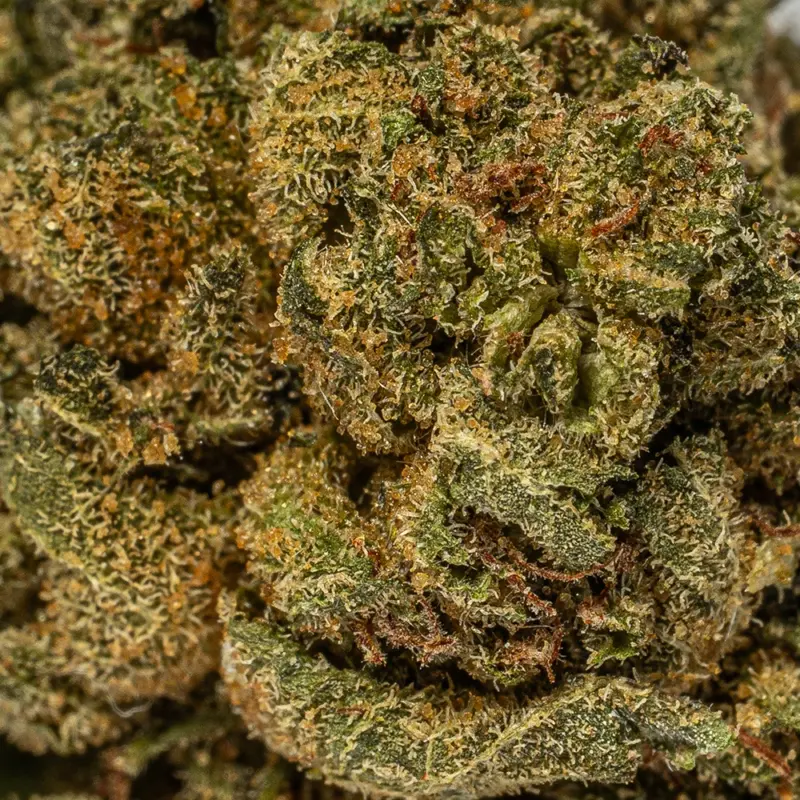 Red Octane is an indica dominant hybrid strain (70% indica/30% sativa) created as a phenotype of the infamous Hi-Octane strain. Named for its gorgeous appearance and classic parentage, Red Octane is the perfect indica to help you settle down and tuck in for a long and stress-free evening of peaceful sleep. Red Octane buds have fluffy, pepper-shaped and oversized forest green nugs with lots of thin, reddish-orange hairs and a super frosty coating of chunky, amber-tinted white crystal trichomes. As you break apart each sticky little nugget, you’ll experience aromas of spicy, peppery gas and flowery diesel accented by touches of sweet cherries. The flavor is just as unique, with a tasty combination of sugary sweet cherries and spicy diesel. The Red Octane high will settle in quickly, filling you with a lifted sense of happiness that wraps its way around you with a warming feeling of complete calm. A tingly physical high comes next, sinking into your limbs and leaving you feeling locked down to the couch and ready to get to sleep. Given these nighttime effects and its insanely high 13-18% average THC level, Red Octane is often suggested to treat a variety of conditions including chronic pain, cramps or the symptoms of PMS, insomnia, depression and chronic stress.